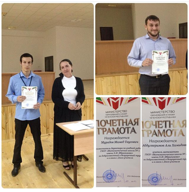 05.10.2015За добросовестный и безупречный труд и в связи с Днем учителя были награждены Почетной грамотой Министерства образования и науки Чеченской Республики