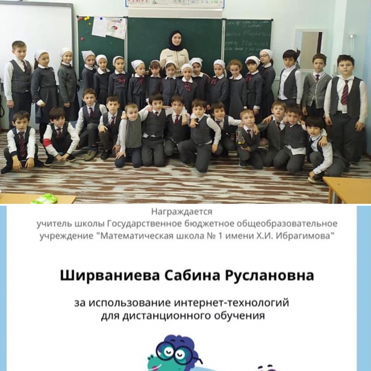04.06.2020Подводя итоги дистанционного обучения, смело можем сказать, что наши учителя одни из лучших по мнению сайта Учи.ру. Так, учителя начальных классов Ширваниеву С.Р. наградили грамотой за использование интернет-технологий дистанционного обучения. Поздравляем!