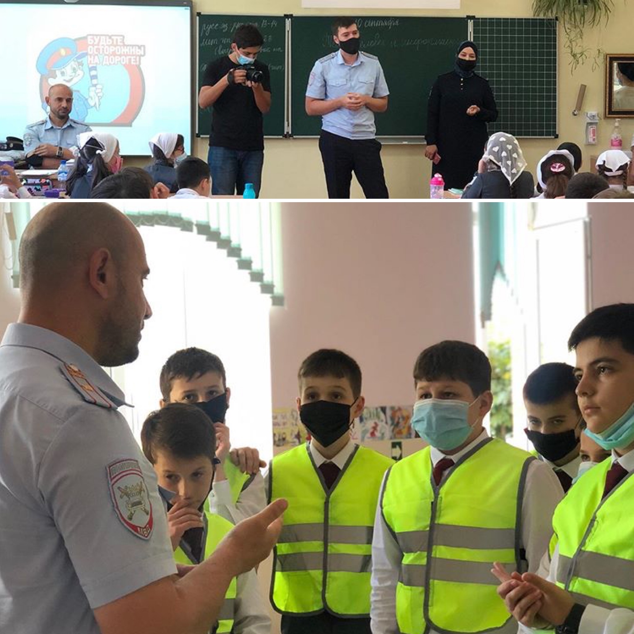 15.09.2020В нашей школе состоялась встреча учащихся начальной школы с начальником отделения пропаганды УГИБДД МВД по ЧР, майором полиции Мадаевым Ибрагимом, старшим инспектором по ОП отделения пропаганды УГИБДД МВД по ЧР, старшим лейтенантом полиции Цураевым Артуром и инспектором по ОП отделения пропаганды УГИБДД, капитаном полиции Решидовой Ларисой, которые провели профилактическую беседу о Правилах дорожного движения.