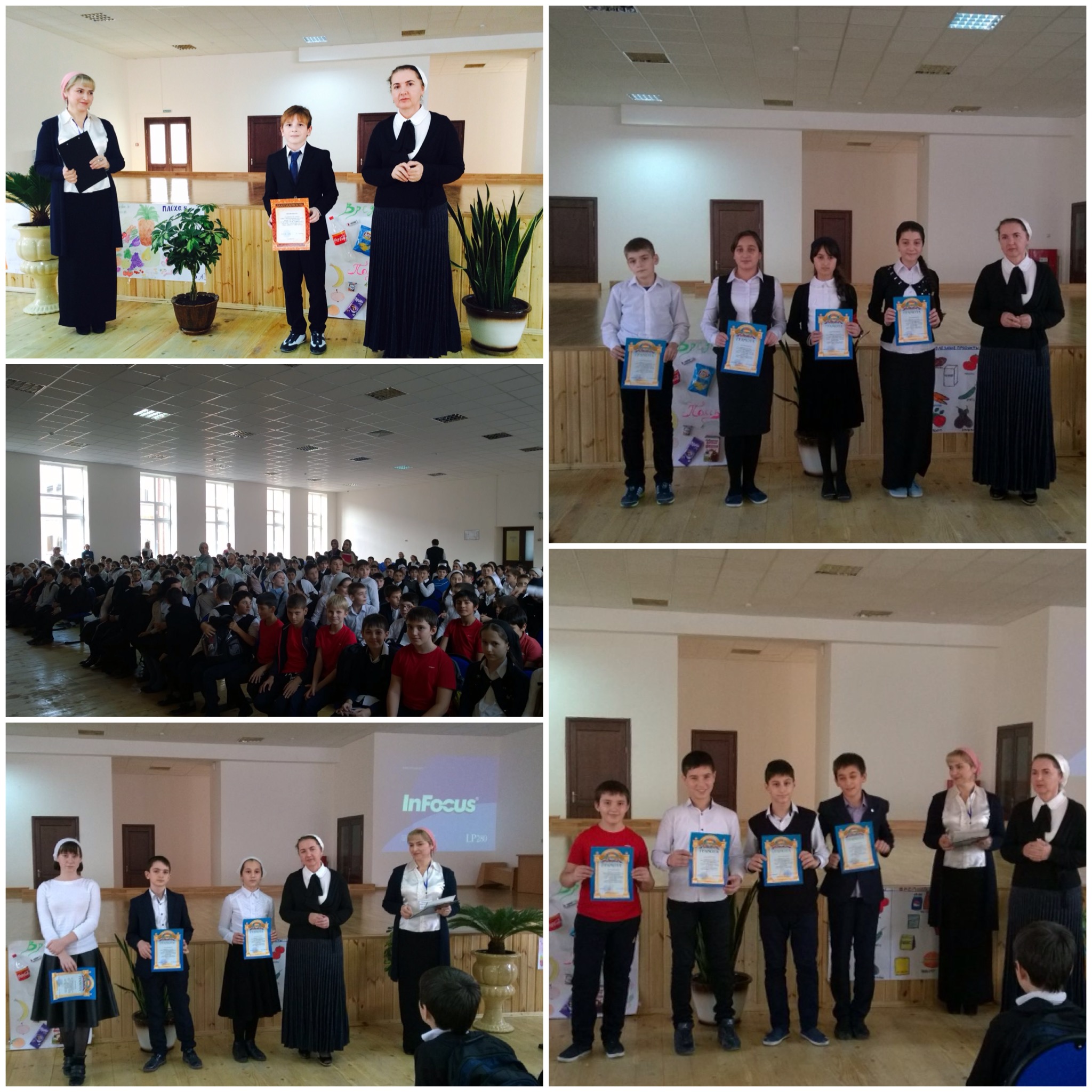 16.11.2015Сегодня подведены итоги реализации проекта "Наше здоровье в наших руках". Награждены победители конкурса рисунков "Здоровая и вредная пища" и спортивного состязания среди учащихся 5-9 кл. под девизом "Спорт - это настоящее и будущее нашей Чечни".