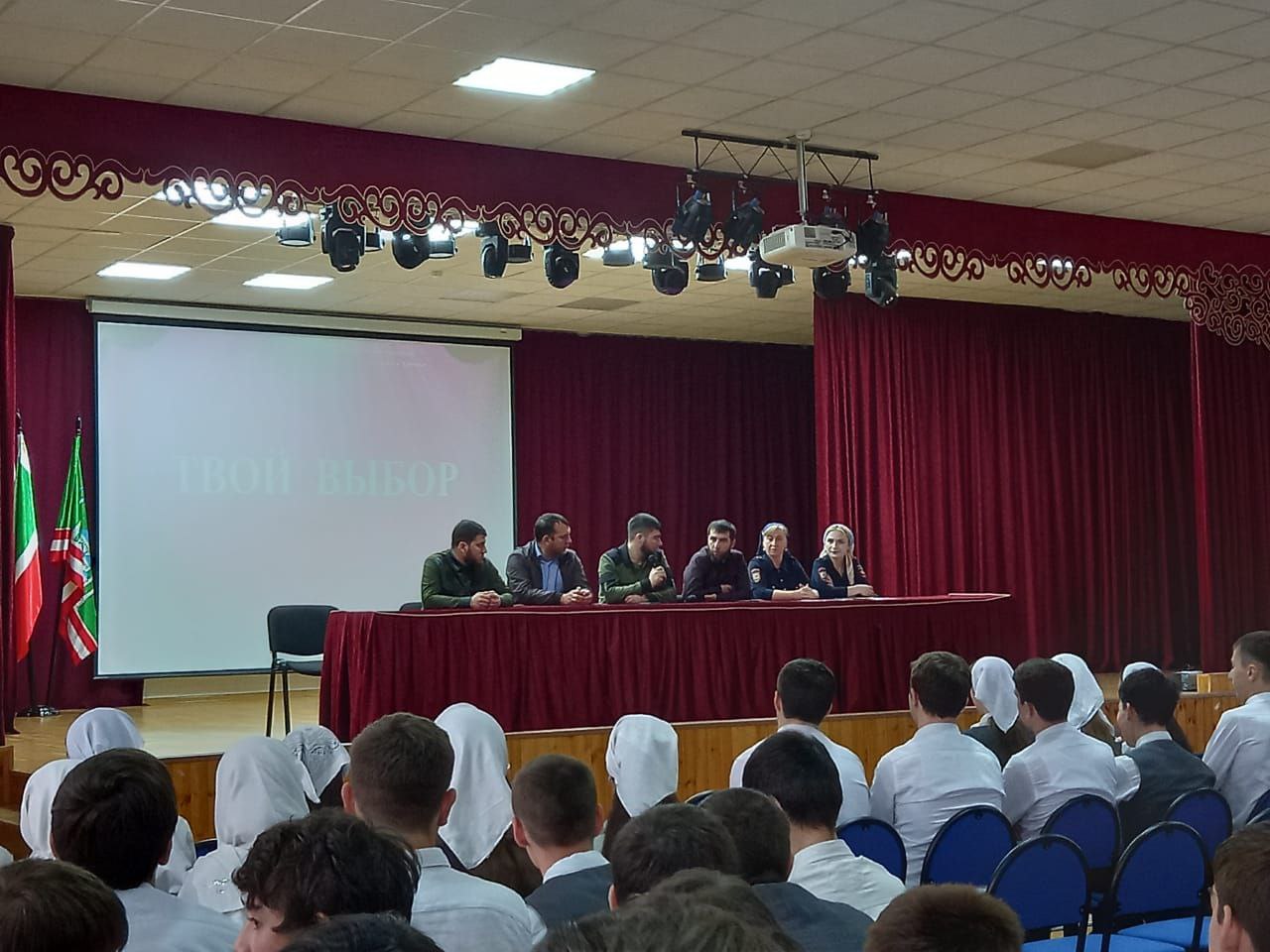 20.04.2022В целях нейтрализации результатов достижения несовершеннолетних в деструктивной деятельности, в том числе экстремистской деятельности, в незаконных массовых акциях, противодействия проникновению в подростковую информационную среду, пропагандирующей правительственные учреждения в образовательных организациях в МБОУ «Математическая школа N 1 им. Х. И. Ибрагимова» г. Грозное оперативно-профилактическое мероприятие под условным названием «Твой выбор».