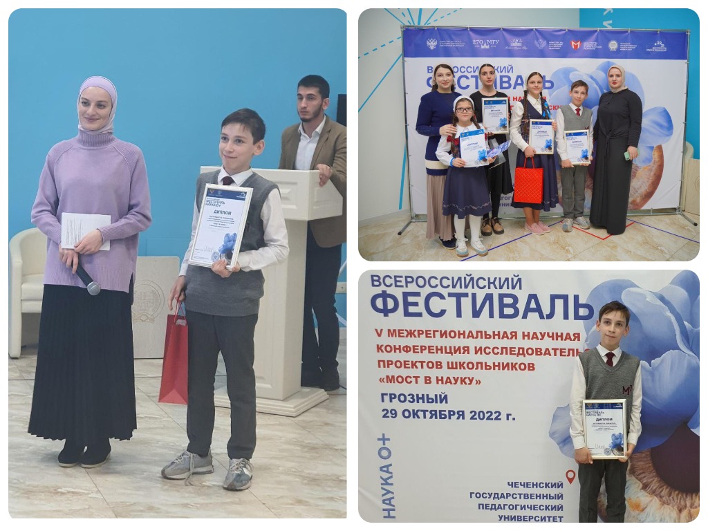 31.10.2022Победы наших учеников - самые приятные новости! Учащийся 7 "Б" класса Тайсумов Зелимхан стал победителем V Межрегиональной научной конференции исследовательских проектов школьников "Мост в науку" в номинации "обществознание" (науч. рук. ИдрисоваУ.Г. ).