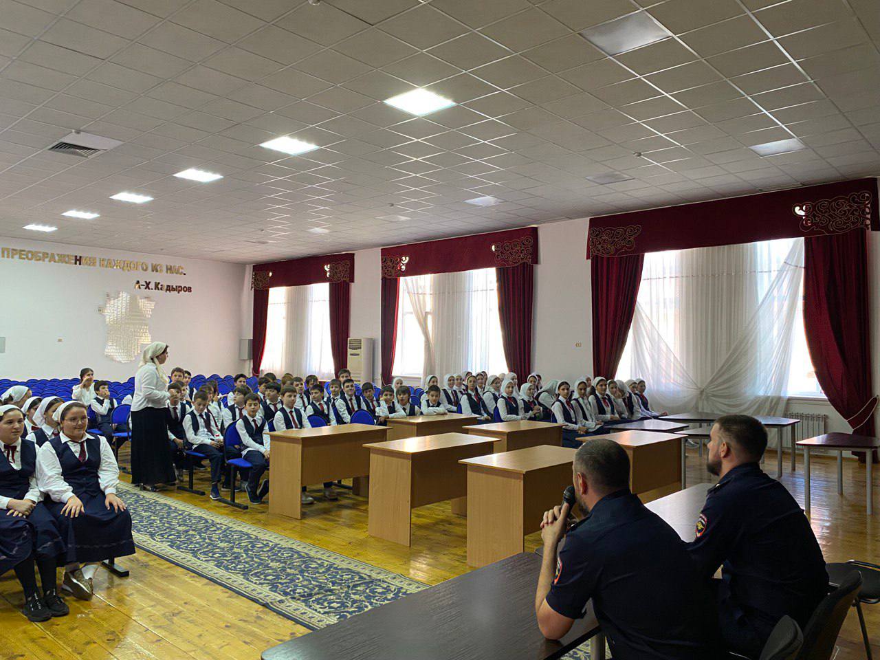 27.09.2024Сегодня в нашей школе состоялась встреча представителями отделения пропаганды безопасности дорожного движения отдела ОАР и ПБДД УГИБДД МВД по Чеченской Республике майорам полиции Цугаевым А.С. и капитаном полиции Бектамиров М.Д с обучающимися 5-7 классов. Цель беседы – профилактика детского дорожно-транспортного травматизма в период летних каникул. Инспектор по пропаганде БДД рассказал обучающимся о том, как правильно вести себя на проезжей части и объяснил правила поведения при катании на велосипеде, самокате, роликах, а также о недопустимости выезда на проезжую часть.