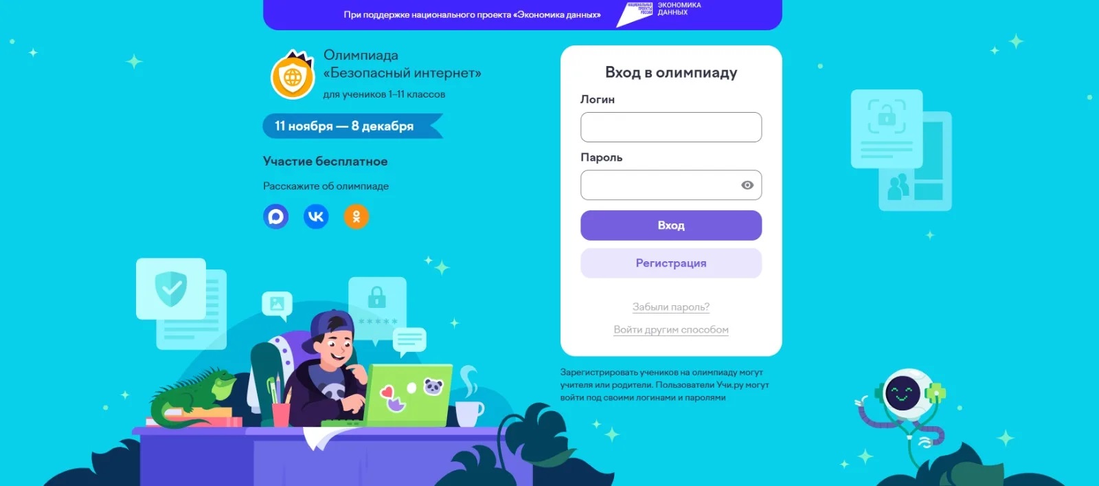 12.11.2025С 11 ноября по 8 декабря пройдет Всероссийская онлайн-олимпиада «Безопасный интернет», направленная на развитие у школьников навыков безопасного поведения в сети и ответственного использования современных технологий. К участию приглашаются ученики 1–11 классов со всей России. Олимпиада организована АНО «Национальные приоритеты» при поддержке Минцифры России, национального проекта «Экономика данных» и образовательной платформой Учи.ру. Олимпиада проводится уже в четвёртый раз и объединяет темы, актуальные для школьников всех возрастов: цифровая безопасность, защита персональных данных, культура общения в интернете, работа с нейросетями и основы цифровой этики. Интерактивный формат заданий делает процесс обучения увлекательным и понятным. Участники проходят восемь интерактивных заданий, моделирующих реальные ситуации в онлайн-пространстве — от общения в соцсетях и онлайн-играх до анализа информации и борьбы с фишинговыми сайтами. «Цифровая среда уже стала неотъемлемой частью нашей жизни. Дети с раннего возраста осваивают различные технологии и гаджеты, поэтому важно, чтобы они понимали базовые правила безопасности в интернете, научились своевременно распознавать риски и применять цифровые инструменты с пользой для учёбы и собственного развития. На это нацелен национальный проект “Экономика данных”. Олимпиада “Безопасный интернет” четвертый год помогает школьникам формировать эти навыки в доступной и игровой форме, делая обучение интересным и практичным», — отметила генеральный директор АНО «Национальные приоритеты» София Малявина. Задания олимпиады знакомят школьников с принципами работы современных технологий, включая искусственный интеллект и квантовые вычисления, учат правильно использовать экранное время и делать осознанный выбор при взаимодействии с онлайн-сервисами. Например, в задаче «Опасные фото» участники определяют, какие изображения безопасно размещать в интернете, а в задаче «План решения» — как действовать, если с банковского счёта списаны средства после перехода по подозрительной ссылке. «Обучение, игры, общение с друзьями — значительная часть жизни современного ребенка проходит за экраном. Поэтому так важно с раннего возраста формировать культуру осознанного использования интернета: понимать возможности, распознавать риски и учиться безопасно действовать в цифровой среде. Ценность олимпиады заключается в её формате: школьники отрабатывают реальные сценарии в спокойной обстановке, что позволяет им научиться прогнозировать последствия и принимать верные решения в виртуальном пространстве», — отмечает Илона Абаншина, директор регионального развития Учи.ру. Участие в олимпиаде бесплатное. На выполнение заданий даётся 60 минут. Для участия необходимо зарегистрироваться на сайте safenet.uchi.ru (https://safenet.uchi.ru/) или войти под логином и паролем от Учи.ру. Все участники получат сертификаты, грамоты или дипломы в зависимости от результата, а учителя — благодарственные письма.