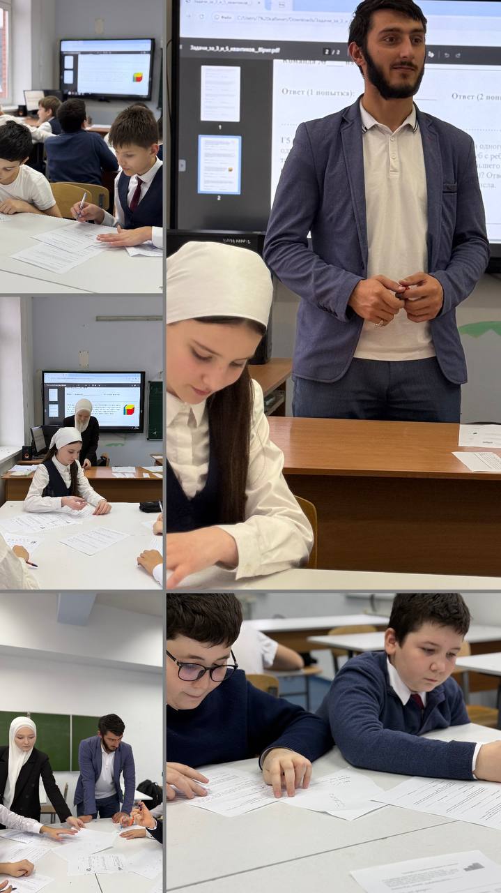 19.12.2025Захватывающее путешествие в мир чисел и логики совершили ученики 6-х и 7-х классов на интеллектуальной игре «Квантландия». Организаторами и ведущими игры выступили учителя математики Мансур Майрбекович Кадиев и Элина Сайд-Магомедовна Яударова. Они подготовили для ребят серию нестандартных задач, занимательных головоломок и командных испытаний, которые требовали не только знаний, но и сообразительности, скорости реакции и слаженной работы. Игра прошла в атмосфере живого интереса и здорового соперничества. Учащиеся с энтузиазмом брались за решение самых сложных задач, поддерживали друг друга и демонстрировали отличные знания. Поздравляем всех игроков с отличным результатом и благодарим организаторов за яркое и полезное мероприятие! Ждём новых интеллектуальных битв!