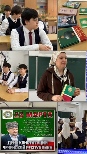 23.03.2026В нашей школы прошли тематические классные часы, приуроченные ко Дню Конституции Чеченской Республики.Мероприятия были объединены общей темой: «Конституция — основной закон». Главная цель занятий — формирование у учащихся активной гражданской позиции, уважения к закону и понимания важности главного документа республики.В ходе классных часов учащиеся познакомились с основными статьями Конституции ЧР, обсудили права и обязанности граждан, а также значение Основного закона для стабильности и процветания родного края. Ребята активно участвовали в беседах, отвечали на вопросы викторин и делились своими мыслями о том, почему так важно знать и соблюдать законы.С такими учениками можно быть спокойными за будущее республики!