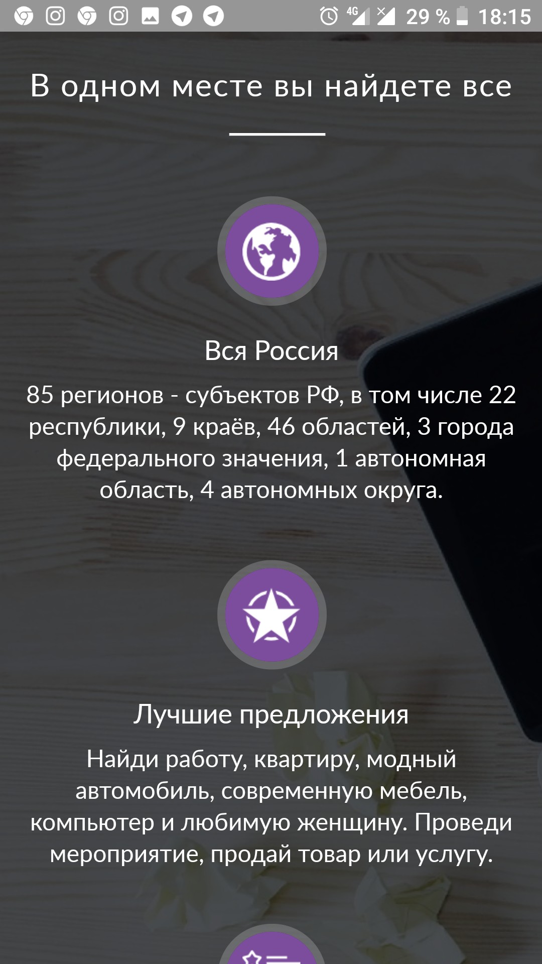 — размещение информации о новых возможностях в работе региональных и муниципальных учреждений, организаций и предприятий по реализации программ социально-экономического развития субъектов РФ и предоставлении качественных товаров и услуг жителям населенных пунктов регионов России по всем отраслям и видам деятельности.