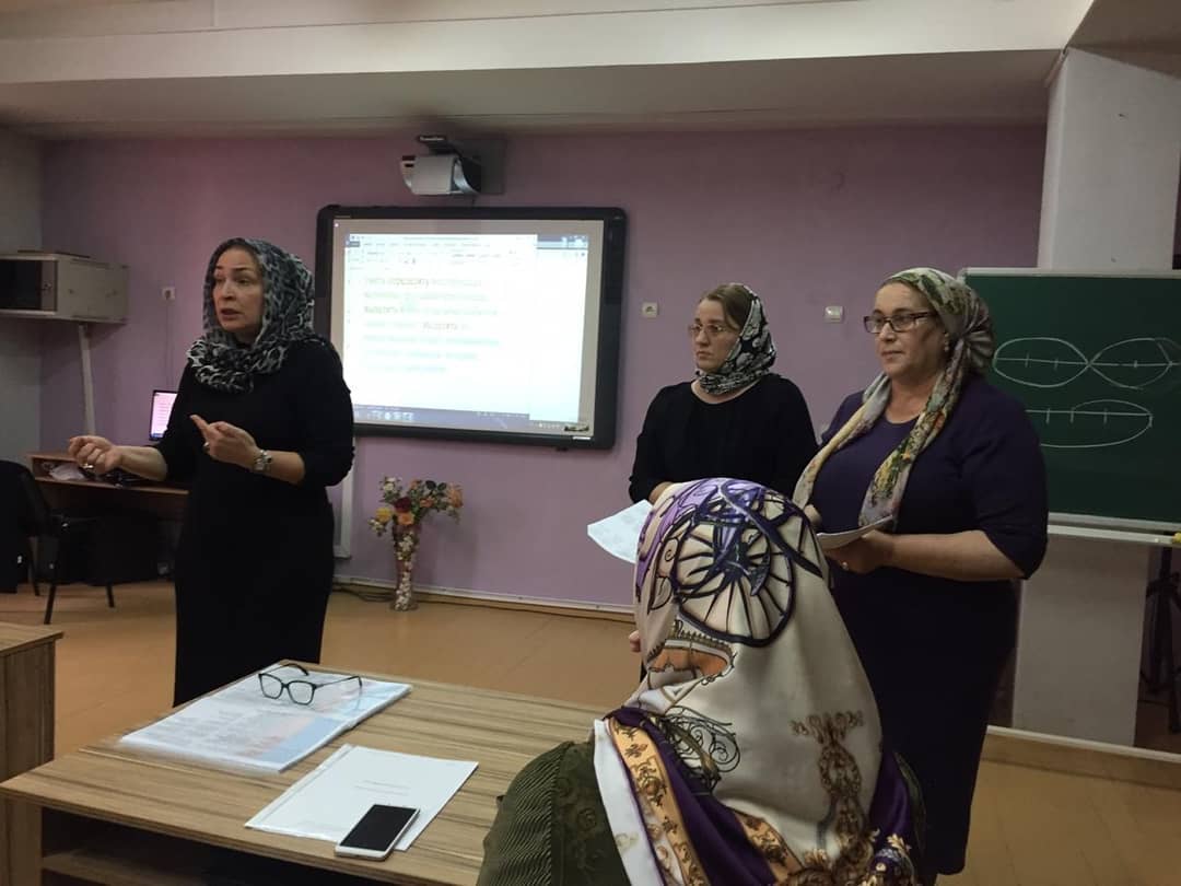 Г. Б. Эльмурзаева, ректор ЧИПКРО, на базе Гимназии №14 провела очередной семинар для учителей начальных классов по теме "Предметные компетенции учителя начальных классов в математике". В семинаре приняли участие учителя начальных классов Загаева Л.А., Бисултанова З.Б., Курбанова З.А.