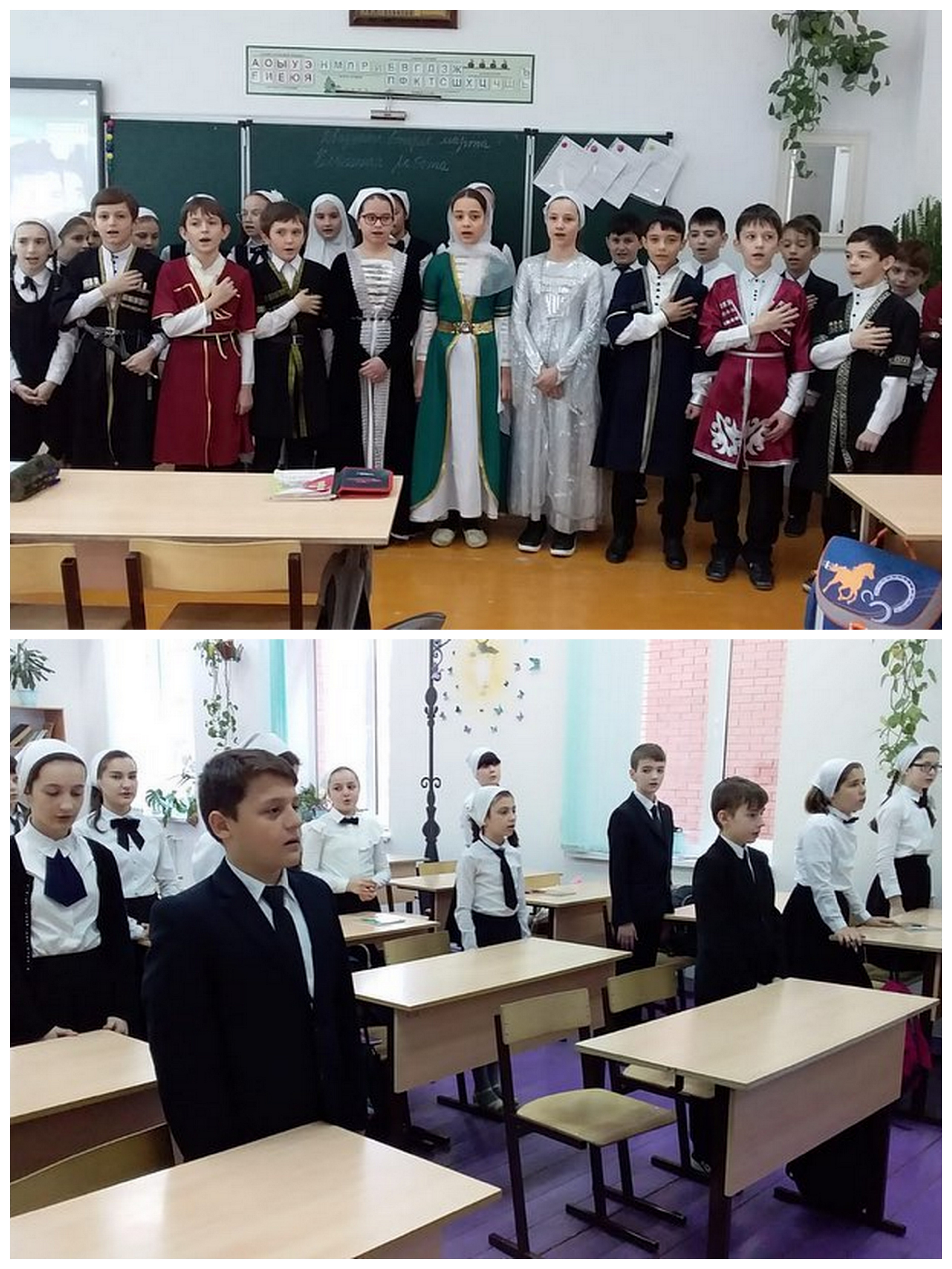 22.03.2019Всю неделю, проходя по коридорам школы, со всех сторон доносились звуки гимна Чеченской Республики – это учащиеся во внеурочное время готовились к конкурсу «Самый классный хор», который прошёл сегодня среди учащихся 2-4 и 5-6 классов. Мероприятие проходило в рамках празднования Дня Конституции Чеченской Республики, целью которого